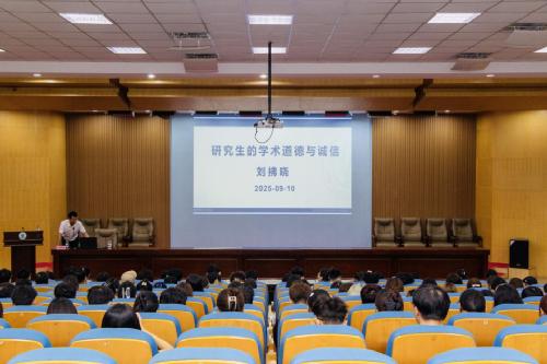 9月10日,青岛农业大学动物医学院党委委员刘拂晓教授以“研究生的学术道德与诚信”为题,为2025级研究生新生作专题报告,系统阐释学术诚信的核心要义与实践要求,为新生筑牢学术生涯“道德基石”。