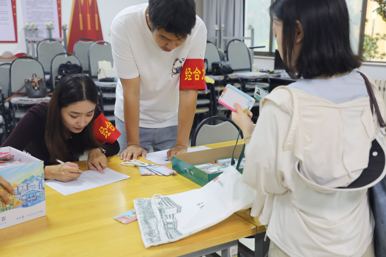 学院注重人文关怀,打造温暖有爱的迎新氛围。学院以文创礼包传递温暖,定制帆布包、卡套承载祝福,报到区设置“经启新程”标语打卡墙,新生纷纷驻足留影,记录研途第一站的青春笑脸。特设“新生故事”采访,52岁的“大龄研新”姜同学坦言“学无止境”;同班同专业同年同月同日生日的新生惊喜相遇,缔结同窗情缘。点滴细节彰显“经合温度”,让研途起点充满归属感。
