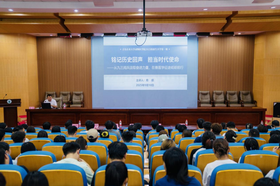 9月10日,青岛农业大学动物医学院院长周顺教授以《铭记历史回声,担当时代使命——从九三阅兵汲取奋进力量,在兽医学征途砥砺前行》为题,为2025级研究生新生带来了一场意义非凡的开学第一课。此次课程在内容选择、环节设置与育人导向层面,充分衔接了学校对“开学第一课”的各项核心要求,内容丰富且富有深度,在引导新生树立正确价值观、明确学习目标等方面发挥了重要作用。